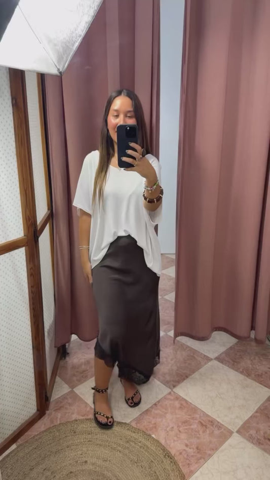 FALDA MARRÓN SATÉN ASIMÉTRICA
