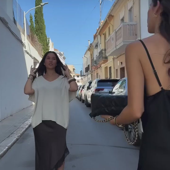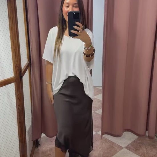 FALDA MARRÓN SATÉN ASIMÉTRICA